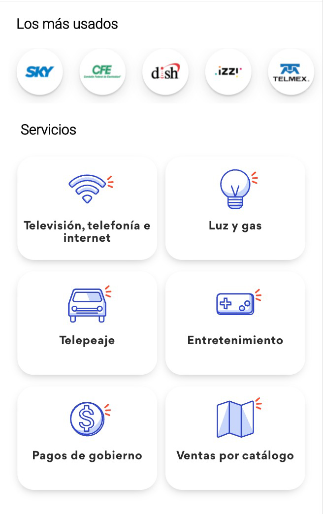 Podrás recargar con las principales compañías telefónicas y servicios. Dentro de la app puedes ver la lista completa de recargas disponibles.